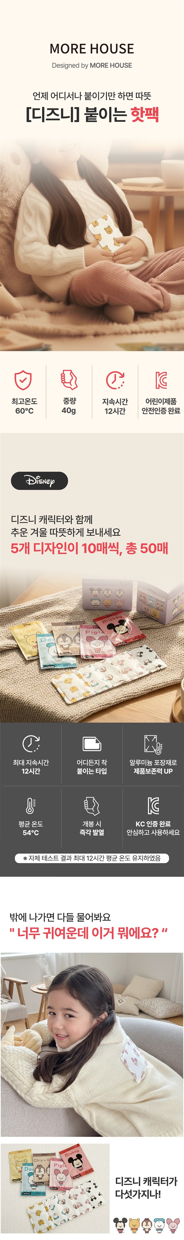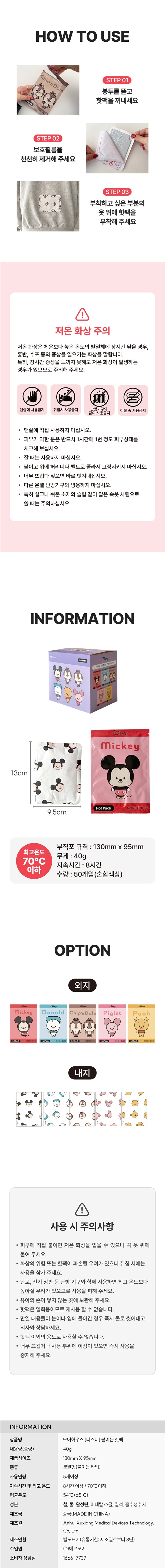개 당 158원 ! KC인증 완료 ! 귀여운 디즈니 캐릭터 붙이는 핫팩 50매 7.900 원