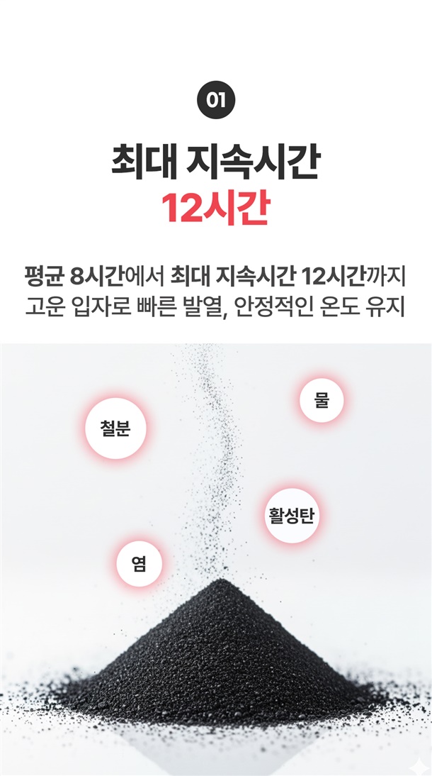 철, 물, 활성탄, 미네랄 소금, 질석, 흡수성수지