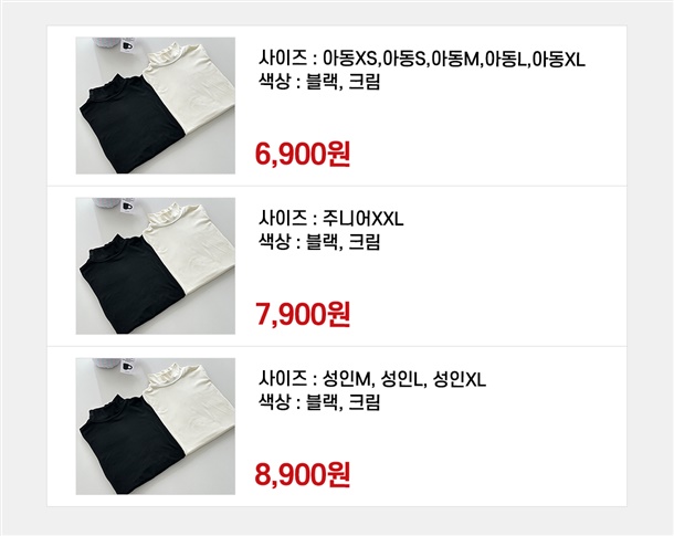 성인 어린이 사이즈 전체 있어요!