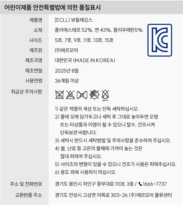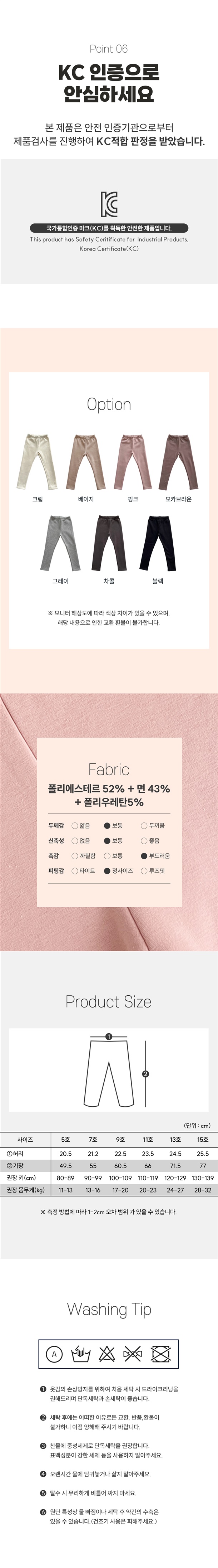 폴리에스테르52%, 면 43%, 폴리우레탄5%